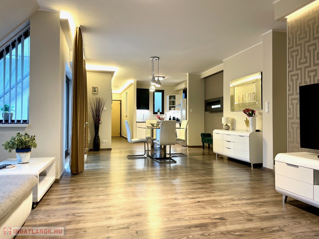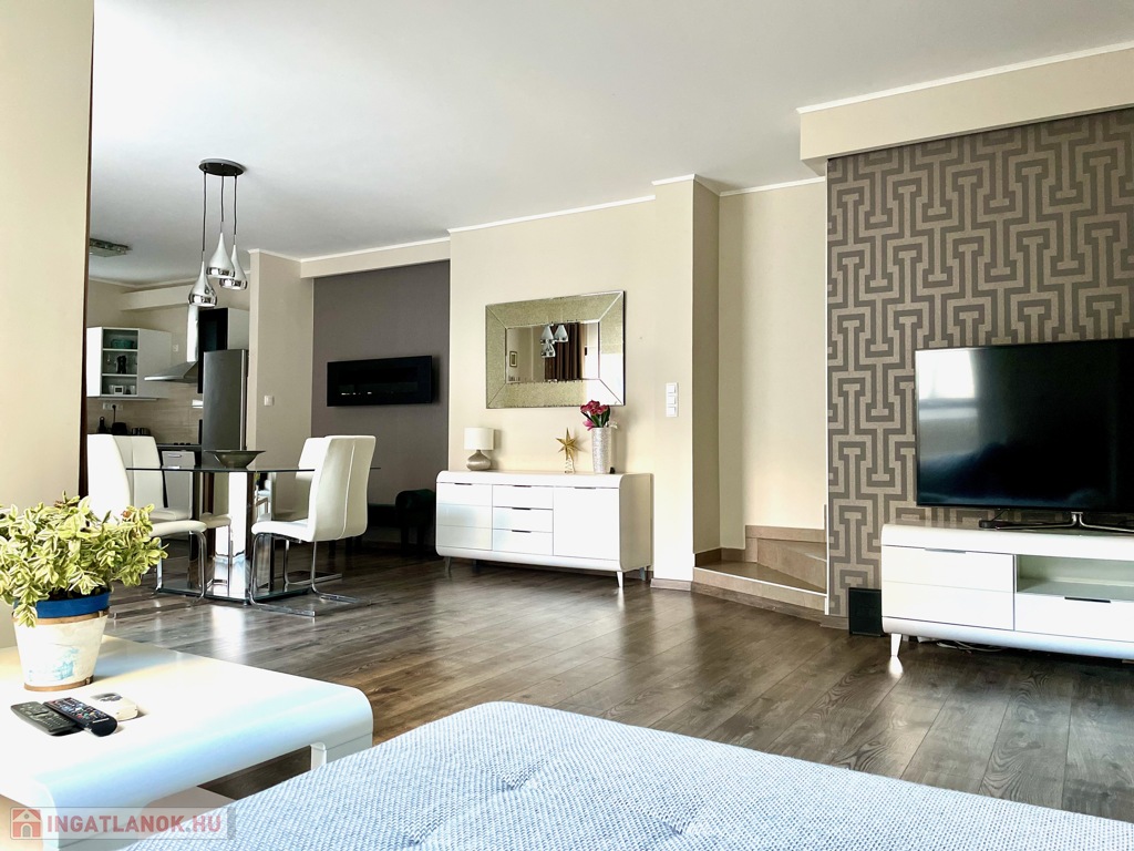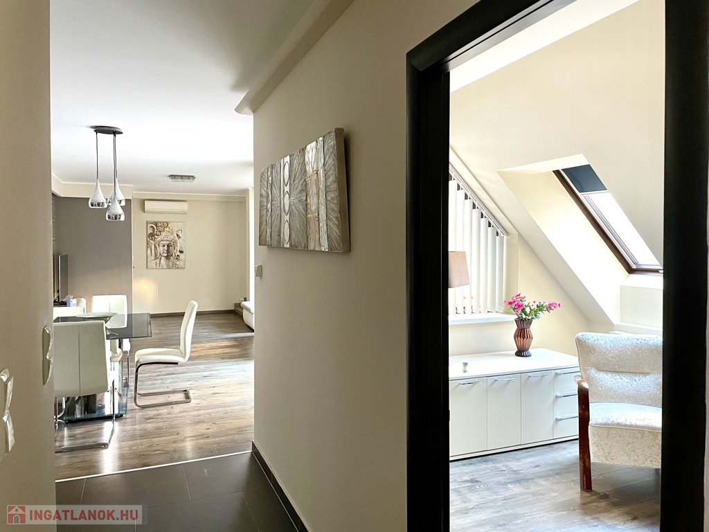 A lakás 2014-ben, emelet-ráépítéssel épült, minimál stílusban, luxus színvonalú kivitelezéssel.