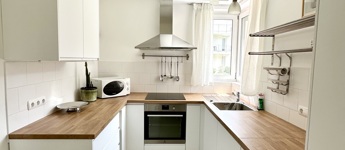 Living room + two bedrooms, fully equipped kitchen, air conditioning, and in excellent condition.