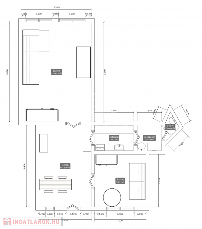 Az otthon 1+1 szobával rendelkezik, ideális lehet egyedülállók vagy kisebb családok számára.