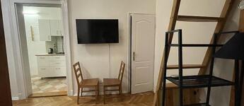 A Nyugati tér közvetlen közelében, a VI. kerület szívében kiadó egy földszinti, frissen felújított, galériás garzonlakás.
