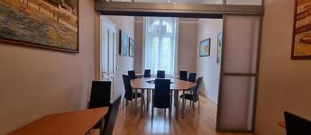 Az ingatlan korábban ügyvédi irodaként működött, elrendezése rendkívül praktikus: több külön nyíló helyiség, amelyek tárgyalók, irodák vagy konzultációs szobák kialakítására egyaránt alkalmasak.