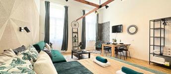 A lakás kényelmes, világos és ízlésesen berendezett, minden megtalálható benne, amire a mindennapokban szükség lehet – ide valóban csak egy bőrönddel kell érkezni.