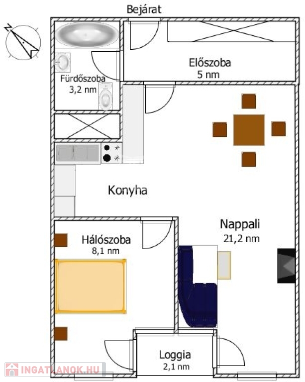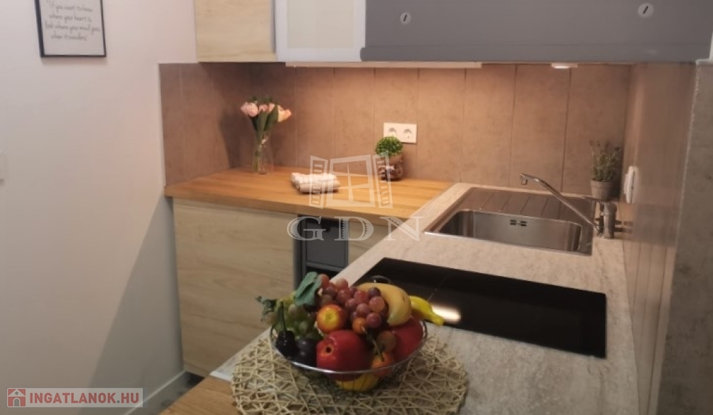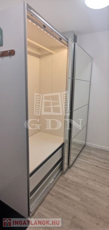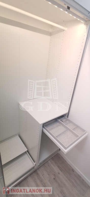 Az ingatlan amerikai konyhás nappalival, külön hálószobával, kádas fürdőszobával WC-vel, valamint az előszobában kialakított nagy méretű, igényes gardróbrendszerrel rendelkezik.