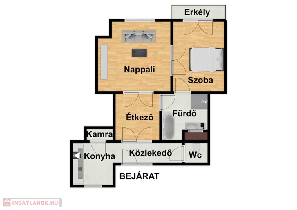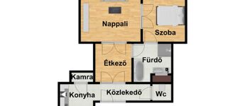 -74m2-es lakás(1 szoba, fürdőszoba, wc, konyha, közlekedő, étkező és nappali)