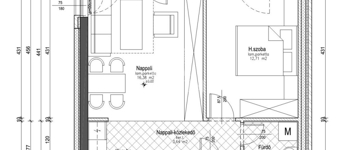 A lakás elrendezése: amerikai konyhás nappali, külön hálószoba, fürdőkádas fürdőszoba és külön WC.