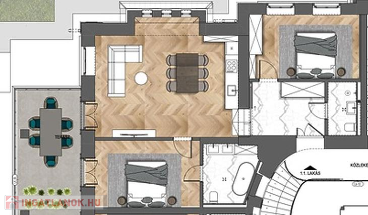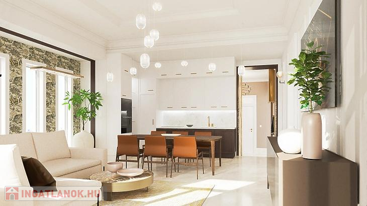 A fotók látványtervek, a lakás berendezése új bútorokkal valósul meg, melyek képtől eltérhetnek.