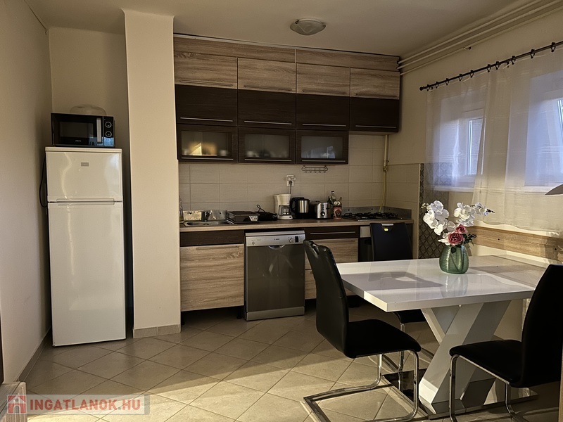 A lakás teljesen bútorozott és gépesített. A konyha modern beépített bútorral, valamint az alábbi készülékekkel felszerelt: