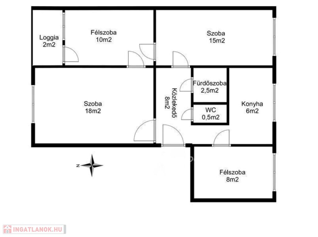 - **Fürdőszoba:** 1 db, külön WC-vel.