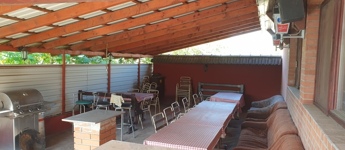 Tégláson, a 4-es fõút mentén 250 m2- es, 7 szobával várja Önöket panziónk, ahol 18 fõ kényelmesen elfér. A nagy, közös terem (70 m2) pingpongasztallal és dartsszal, valamint az 50 m2-es kerthelyiség gázgrill sütõvel tökéletes helyszín a kikapcsolódásra. A közelben minden szükséges üzlet megtalálható.