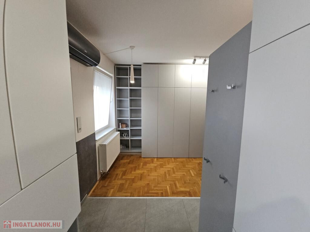 Kaposváron, a Petőfi utcában kínáljuk bérbevételre ezt az igazán igényes módon felújított és átalakított prémium minőségű lakást. A társasház első emeletén helyezkedik el, 62 m2-es, két szoba plusz nappalis, erkélyes. Fűtése egyrészt cirkós: a nappali egy része, a konyha és a fürdő padlófűtéssel, a két hálószobában, valamint a nappaliban radiátorokkal, a fürdőben plusz törölközőszárítós radiátorral megoldva. Másrészt három hűtő-fűtő klímaberendezés szolgálja a komfortérzetet a két szobában és a nappaliban. A lakás teljesen bútorozott, gépesített, azonnal költözhető. Sok praktikus szekrény segít az elpakolásban, a konyhai gépek mind modernek, beépítettek, van indukciós főzőlap, sütő, mikro, mosogatógép, hűtő, fagyasztó. A fürdő a különleges dupla mosdókkal, walk-in zuhannyal és a fekete, falra szerelt WC külön helyiségben találhatók. A lakás belvárosi, csendes, nyugodt, elhelyezkedése kiváló. Igényes, gondos, nemdohányzó bérlőt keresünk, aki a kéthavi bérleti díjnak megfelelő összegű kaució és az első havi bérleti díj kifizetése után azonnal beköltözhet. A lakásban állatot tartani, dohányozni szigorúan tilos. Opcionálisan garázs is bérlehető hozzá, ami a házon belül, az alsó szinten van, 20 m2-es, villannyal ellátott.