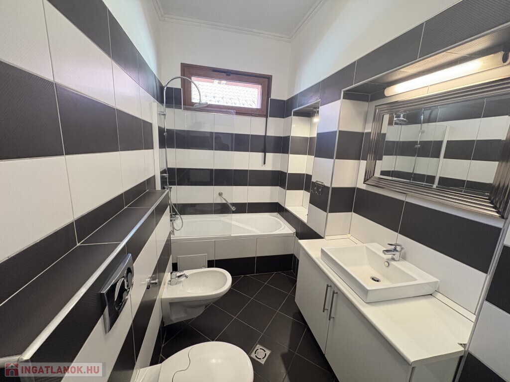 Kaposváron - a kedvelt Északnyugati városrészben - a Kossuth Lajos utcában, rendezett - 3 lakásos - társasház földszintjén található, azonnal költözhető 118 m2-es lakás - berendezés nélkül, a képeken látható tökéletes műszaki állapotban - kiadó. A lakásban 4 szoba, előszoba-étkező, konyha, fürdőszoba wc-vel és bidével, mosókonyha-kazánház, wc, illetve a mosókonyhából nyílik egy pince is, valamint tartozik a lakáshoz egy fedett terasz is. A lakás rezsije nagyon kedvező, a fűtést és a melegvíz ellátását Viessmann kombi gázkazán szolgáltatja, valamint mindegyik szobában 1-1 légkondicionáló is felszerelésre került, továbbá a rendezett udvarban 1 személyautó parkolási lehetősége biztosított. A lakás nagyon csendes helyen van, a közelében Zrínyi Ilona Általános iskola, Munkácsy Mihály gimnázium, élelmiszerbolt (Spar, 0-24), gyógyszertár, buszmegálló, sportcsarnok, konditerem 500 m sugarú körben megtalálhatóak. A lakást a tulajdonosa 4 tagú rendezett család részére is szívesen kiadja, a dohányzás és a kisállat tartása nem engedélyezett. Bérleti díj: 250.000.- Ft/hó + rezsi + 2 havi kaució. Amennyiben az ingatlan felkeltette az érdeklődését, kérem hivatkozzon a 126. számú ajánlatra! Irodánk címe: Kaposvár Irányi D. u. 9.
