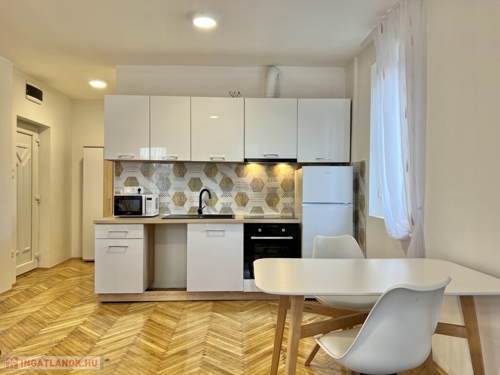 Kaposváron a belváros közelében a Pécsi utcában, teljes körűen, igényesen felújított társasház 1. emeletén lévő 35 m2-es, - akár azonnal költözhető - berendezett lakás kiadó. A lakásban tágas, hangulatos szoba - konyha - beépített konyhabútorral Gorenje gépekkel - étkező, fürdőszoba- wc helyiségek kerültek kialakításra. A lakás rezsije nagyon kedvező, a fűtése - külön mérővel ellátott - légkondicionálóval megoldott, a melegvíz ellátást villanybojler biztosítja. A lakás közelében megtalálható az S-Park bevásárló központ (Interspar, DM, Mc'Donalds stb.), de a belváros is 10-15 perc séta távolságra van. A lakást a tulajdonosa legfeljebb 2 felnőtt részére kívánja bérbe adni, a dohányzás és a kisállat tartása nem engedélyezett. A lakáshoz tartozik még a társasház zárt udvarában 1 személygépkocsinak parkolóhely is. Bérleti díj: 130.000.- Ft/hó + rezsi + 2 havi kaució. Amennyiben az ingatlan felkeltette az érdeklődését, kérem hivatkozzon a 975. számú ajánlatra! Irodánk címe: Kaposvár Irányi D. u. 9.