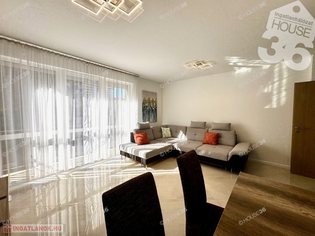 Kecskemét belvárosában, 2022-es építésű, 1. emeleti, 71 m2-es, amerikai konyhás, nappali + 2 szobás, nagy teraszos, dupla erkélyes, luxus minőségű, A++ energetikájú lakás saját tárolóval, teremgarázs álláshellyel KIADÓ.