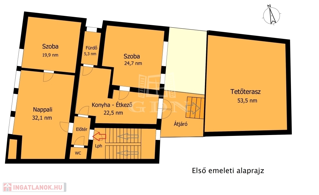 Első emelet: 110 nm + terasz