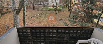A loggiáról zöld, nyugodt parkra nyílik kilátás.