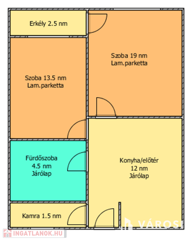 A lakásban 2 szoba, konyha, előszoba, kamra, fürdőszoba, erkély található.