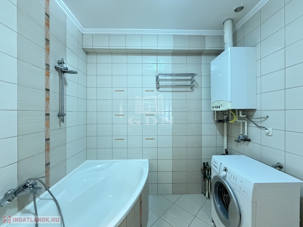 A lakás fűtése saját kondenzációs gáz kazánnal történik, hőleadással. Az ingatlan a mai kor igényeinek teljesen megfelel, ízléses bútorokkal felszerelt. Ablakai újak (műanyag, hőszigetelt), rovarhálós redőnnyel, a szobák árnyékoló rolókkal ellátottak. A lakás rezsi költsége rendkívül kedvező. Dohányzás és háziállat tartása nem megengedett. A lakás jellege és kialakítása miatt kényelmes és nyugodt lakhatást biztosít 1-2 fő számára, családnak iskoláskorú gyermekkel. Amennyiben olyan ingatlant bérelne, ahova csak a személyes dolgait kell hoznia, biztos, hogy elnyeri a tetszését.