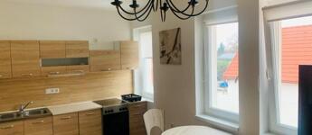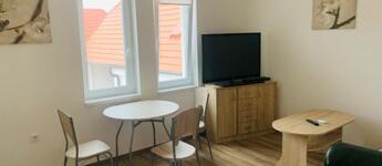 The American kitchen living room has built-in kitchen furniture and built-in appliances (ceramic hob, oven, and refrigerator) and all rooms are furnished.