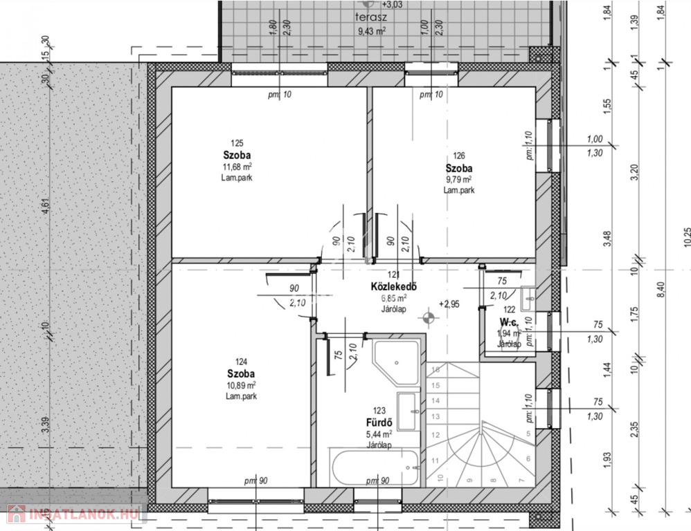 - HASZNOS ALAPTERÜLETE (emelettel együtt): 103,68 m2