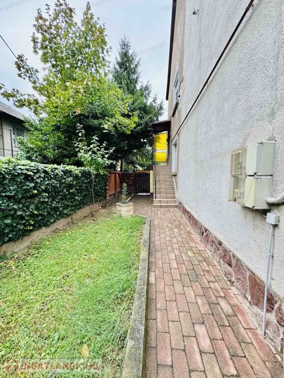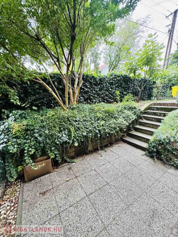 A telekre (illetve a telek előtt is) akár több gépkocsinak is lehetősége van beállni, jelenleg kint megoldott a parkolás. A kert nagyon hangulatos, lekeríthető. A lent kiadható garzon előtt 10 nm terasz, illetve a kertben további 2 nm tároló, szépen parkosított az udvar.