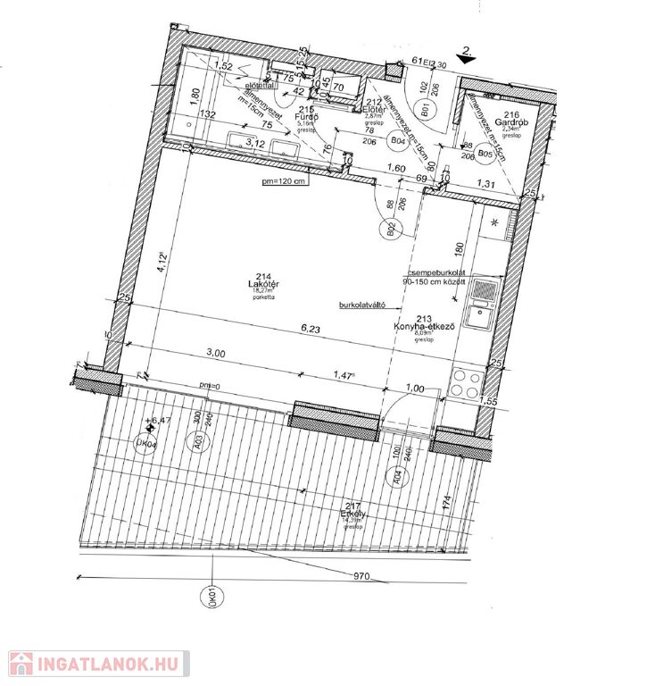 Ez az DK-i tájolású lakás 36,73 m²-es összterülettel rendelkezik, amely magában foglal: