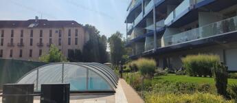 -A társasházhoz tartozik egy impozáns, 12 méteres kültéri medence is, ahol a nyári hőségben felfrissülhet, vagy élvezheti a nap sugarait a vízpart közelében. És ha mégis inkább a Balatonban úszna, a tó közelsége révén ezt pillanatok alatt megteheti.