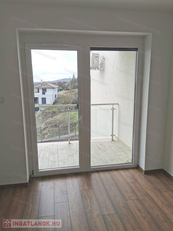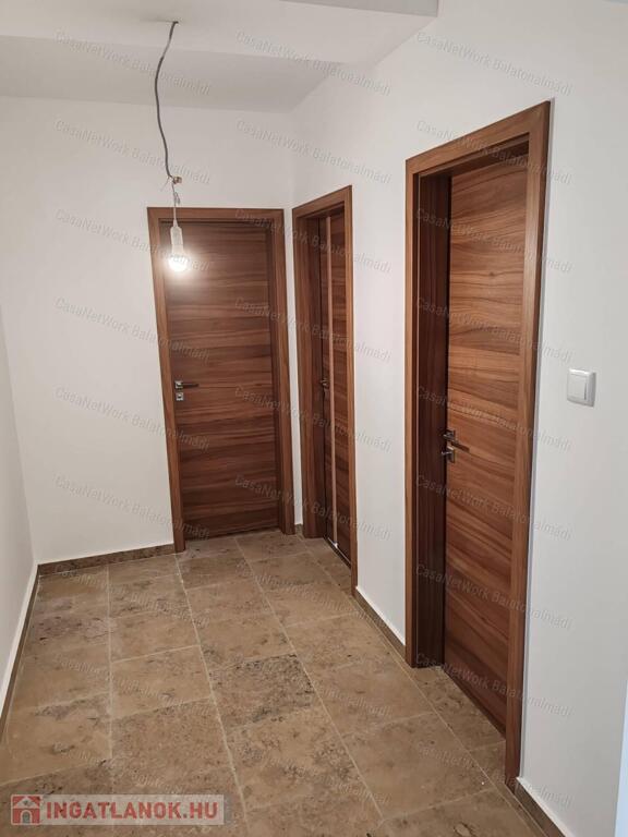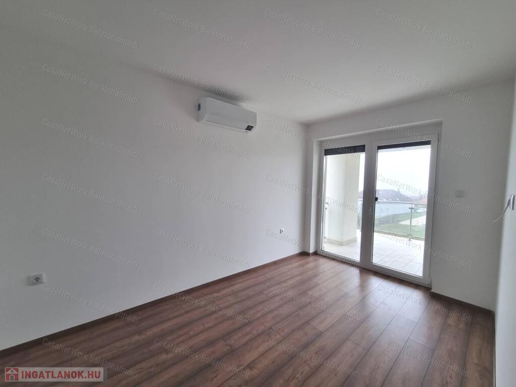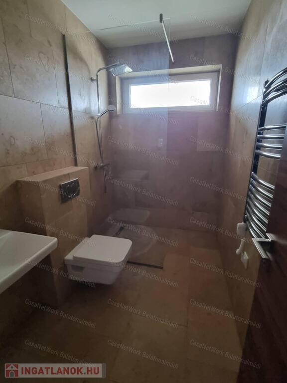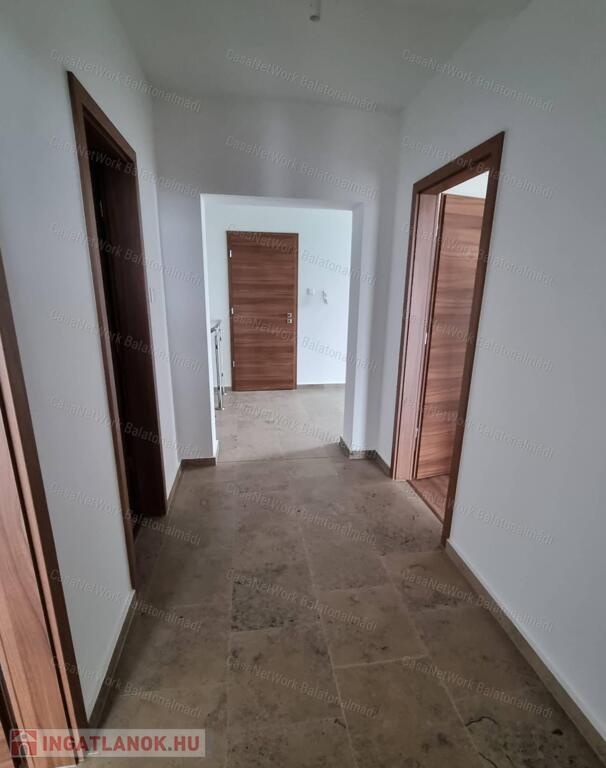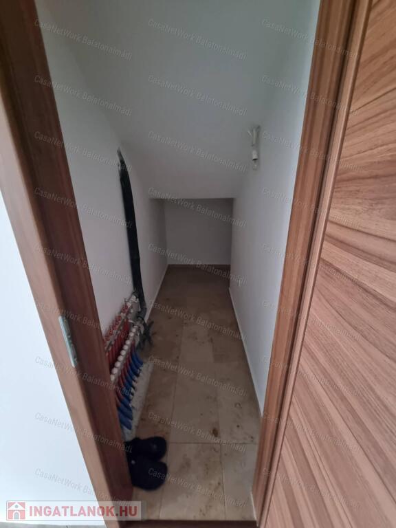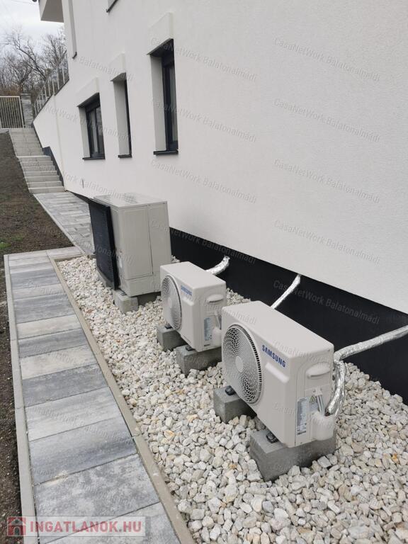 - emelet: kétállásos garázs, előtér, közlekedők, kettő erkélykapcsolatos szoba, fürdőszoba, háztartási helyiség, 16 m²-es fedett erkély, csodás panorámával a Balatonra