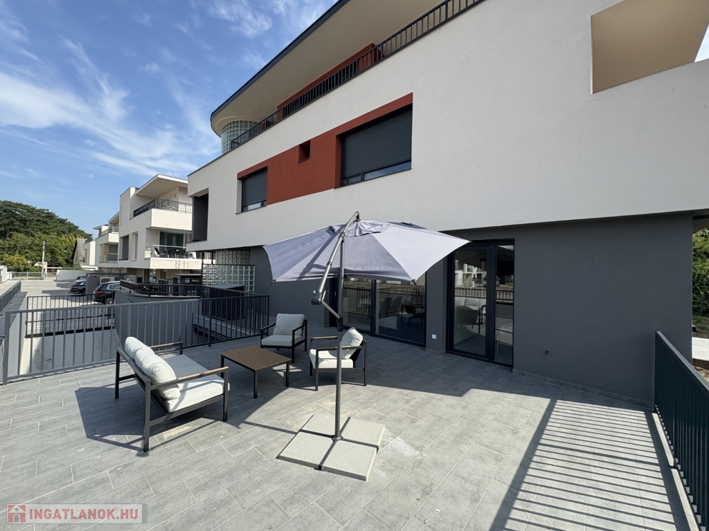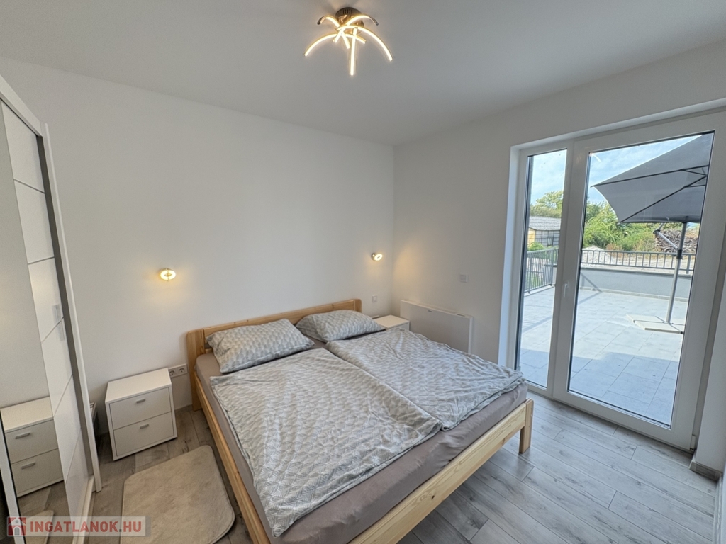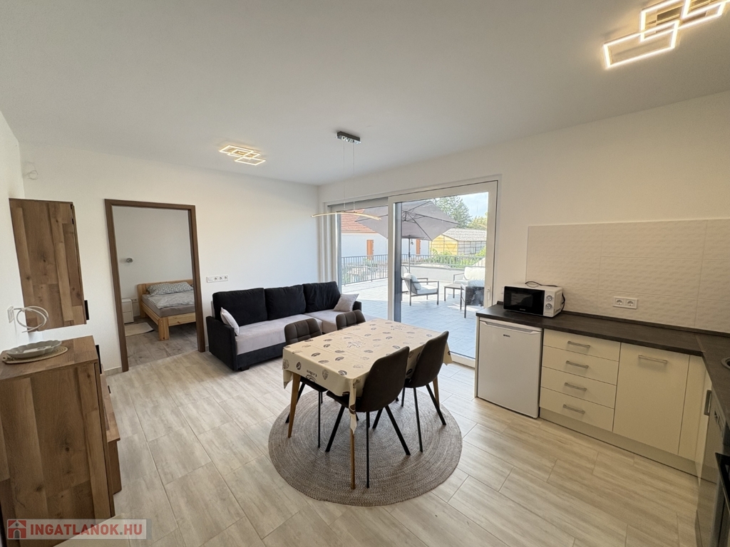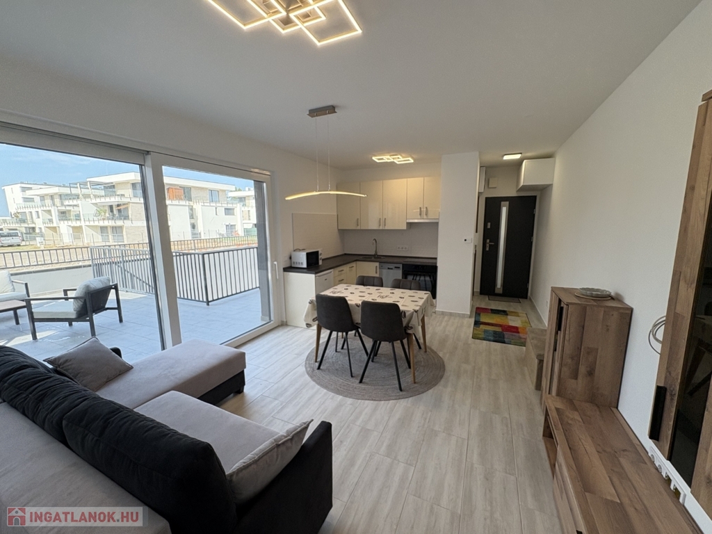 Balatonlellén 100 m-re a vízparttól a Hullám utcában, 37 m2-es igényesen kialakított újszerű lakás, 37 m2-es terasszal, garázzsal és tárolóval együtt eladó. A lakásban előszoba, konyha-étkező-nappali, 1 hálószoba, valamint zuhanyzó-wc helyiségek találhatóak, a fűtése házközponti fűtéssel megoldott, a melegvíz ellátást villanybojler biztosítja, továbbá tartozik hozzá egy exkluzív 37 m2-es terasz, illetve egy személyautó részére garázs és egy önálló tároló is.