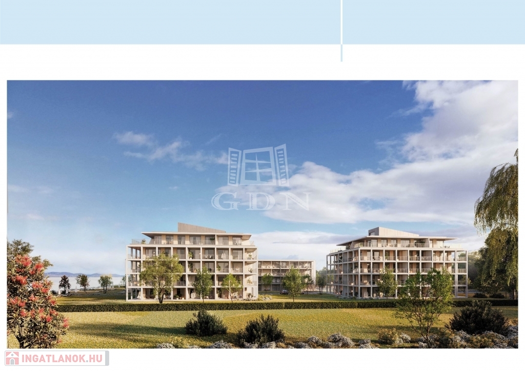 Balatonmáriafürdő központi részén, körbekerített parkosított telken, saját partszakasszal rendelkező lakóparkban, negyedik emeleti,