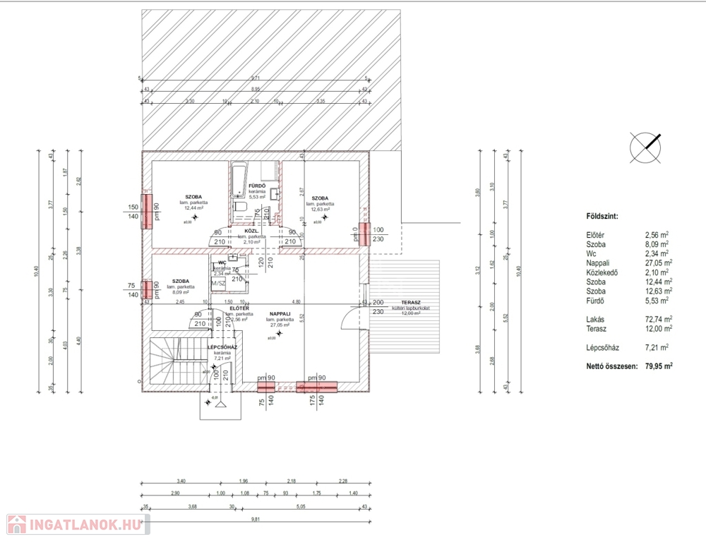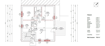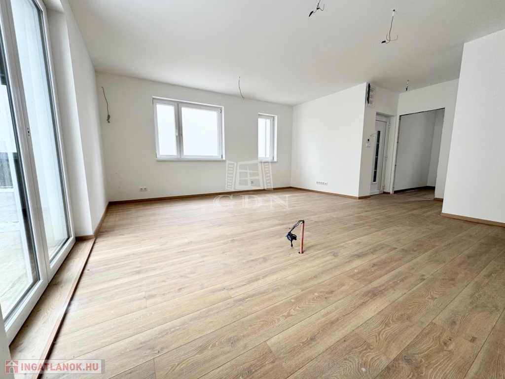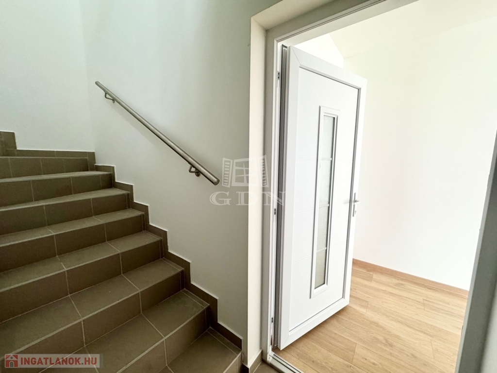 Az épület 38 cm-es Porotherm klímatéglából épült, melyre 10 cm-es dryvit szigetelés került. A nyílászárók dupla rétegű üvegezéssel ellátott ablakokkal és teraszajtókkal kerültek beépítésre. A lakásban a beltéri ajtók, világító testek és a konyhabútor kialakításra vár, melyet az új tulajdonos a saját igényeire szabhat.