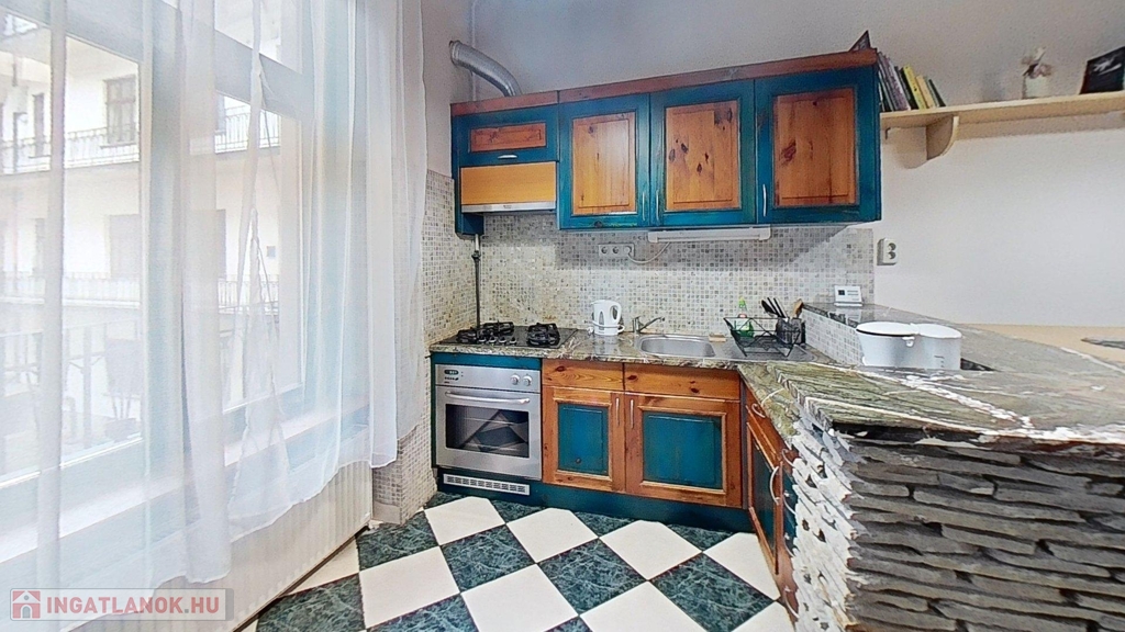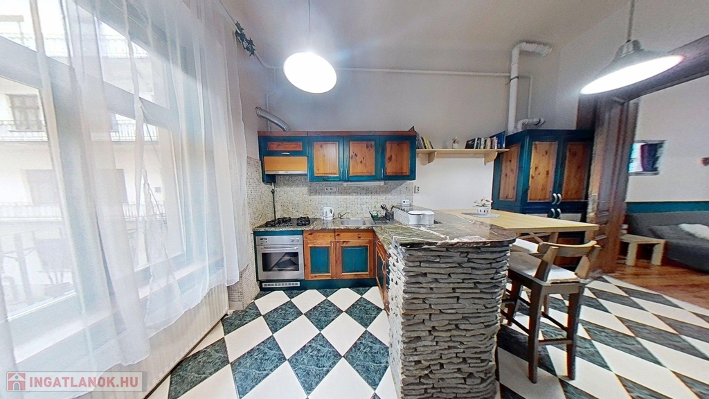 A lakás egyedi belső kialakítást kapott, ablakai hőszigeteltek, a belső ajtók fából készültek, a vár hangulatához tökéletesen alkalmazkodnak, és az egész lakás hangulatát emelik.