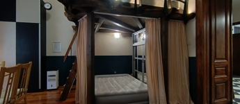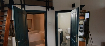Két galéria is beépítésre került, a teljes szoba belmagasság 3.68 cm, a galériák 1. 6 m magasak,