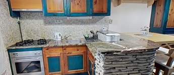 A konyha teljesen felszerelt, a munkapult márvánnyal borított, amely egy szintén márványborítású bárpulttal is ki van egészítve.