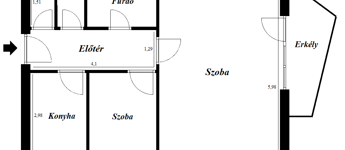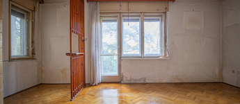 A beosztás jelenleg is kiváló, de a felújítás során akár tovább is alakítható pl. amerikai konyhás nappali + 2 hálószobássá.