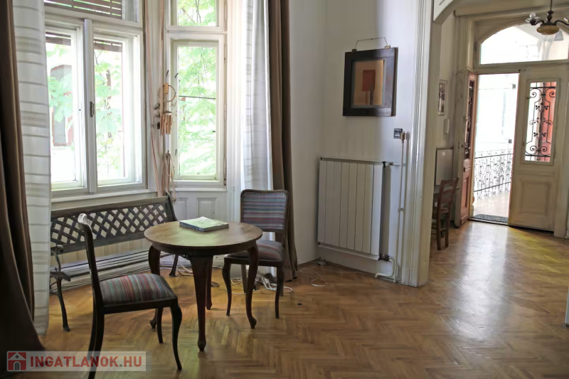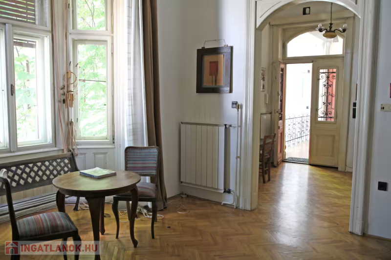 Ritkaságnak számító, nem körfolyosós, csendes, intim hangulatú házban kínálunk eladásra egy 98 nm-es, nagypolgári lakást a második emeleten. A lakás a belső udvarra néz, így kimondottan nyugodt környezetet biztosít, miközben a környék infrastruktúrája kiváló.
