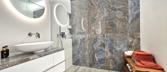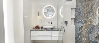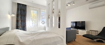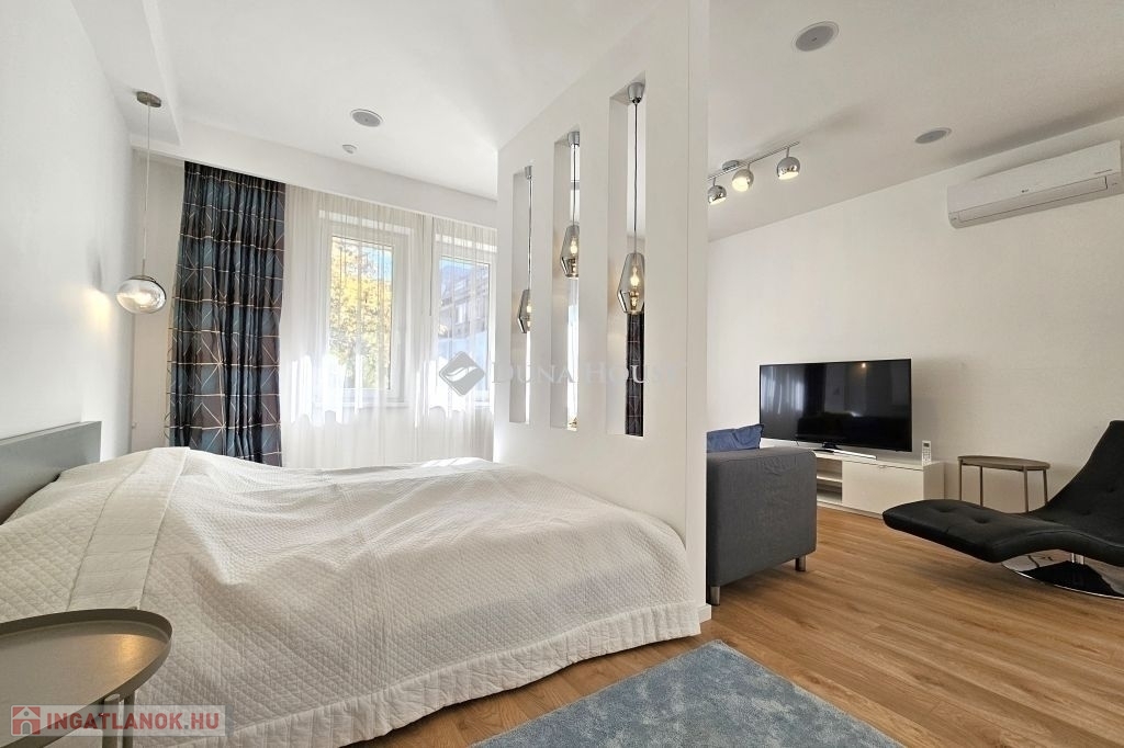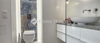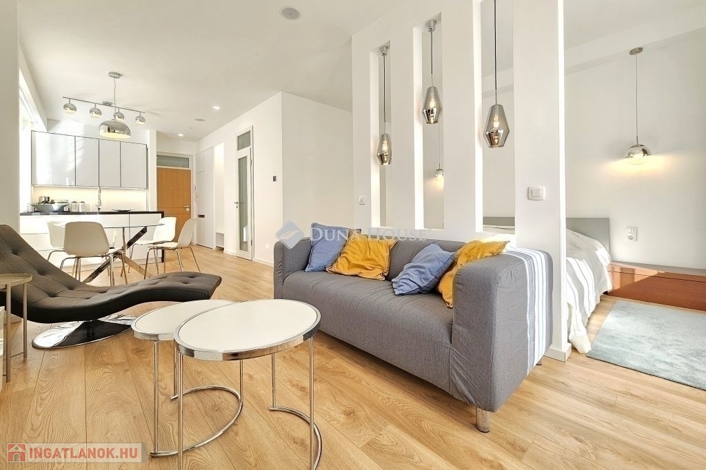 A felújítás során a lakást teljesen szétbontották: új alaprajz, új gépészet, új elektromos hálózat, új burkolatok és prémium nyílászárók kerültek beépítésre. Az eredmény egy modern, egylégterű, letisztult otthon, ahol minden részlet átgondolt.