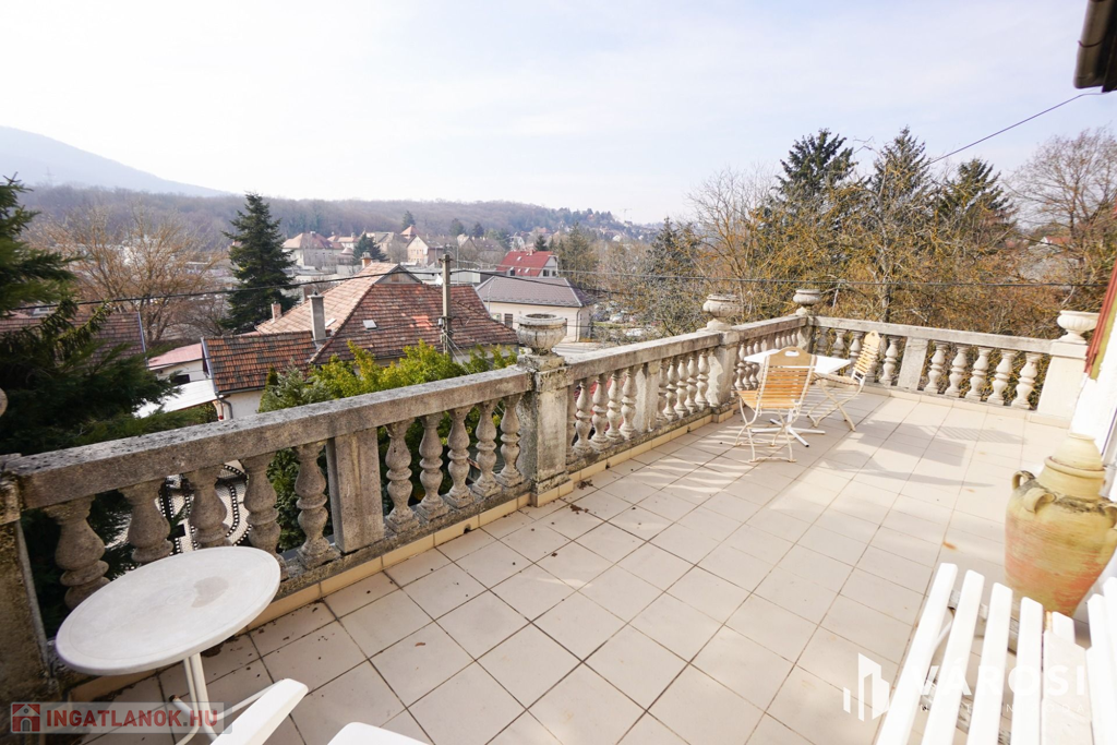 A lakás, egy korábbi villa legfelső emeletén helyezkedik el méretes erkélyekkel és lenyűgöző kilátással a környező hegyekre.