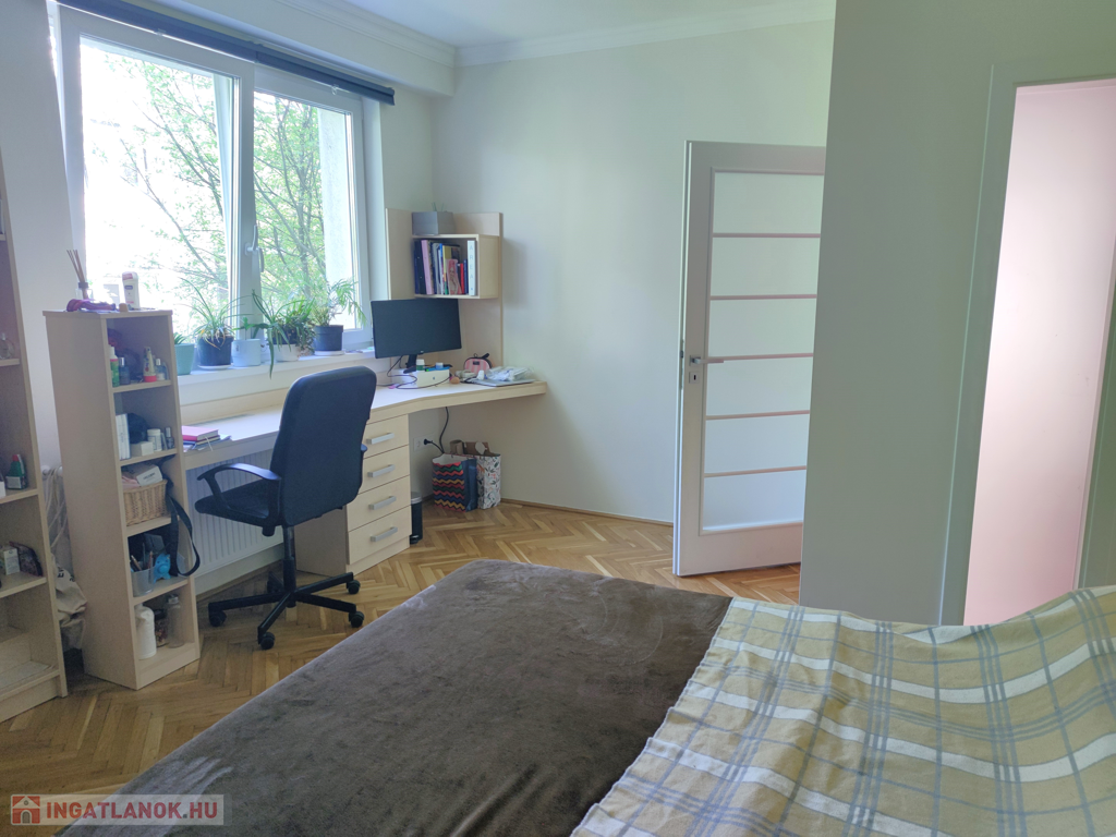 A lakás délnyugati fekvésű, 23 nm-es napfényes teraszáról gyönyörű kilátás nyílik a zöld környezetre. Mindhárom szoba kertre néző, külön bejáratú, a nappali és az egyik hálószoba is a teraszra nyílik.