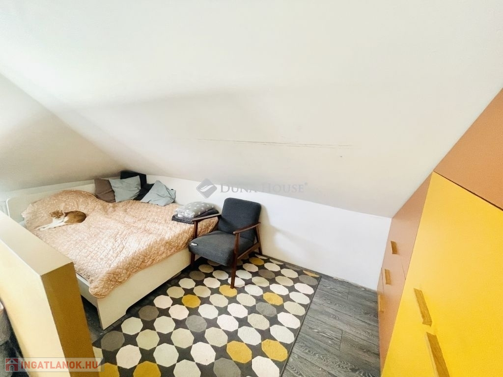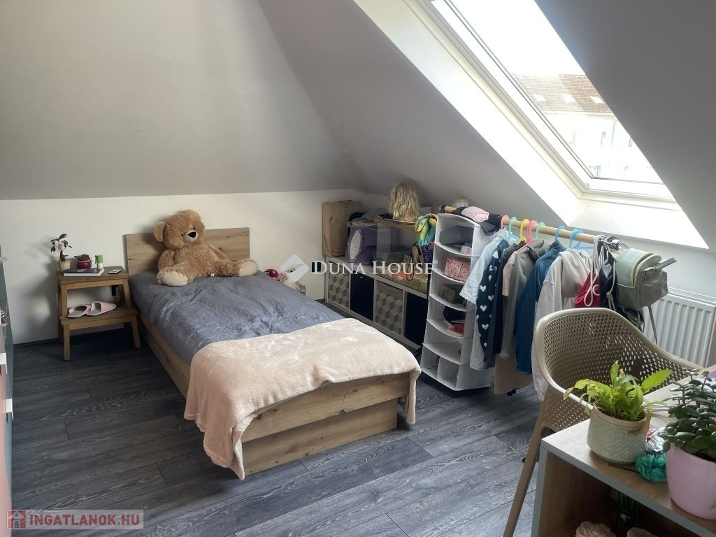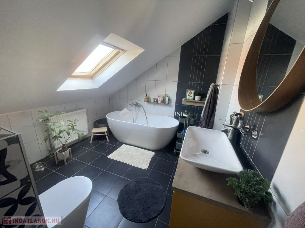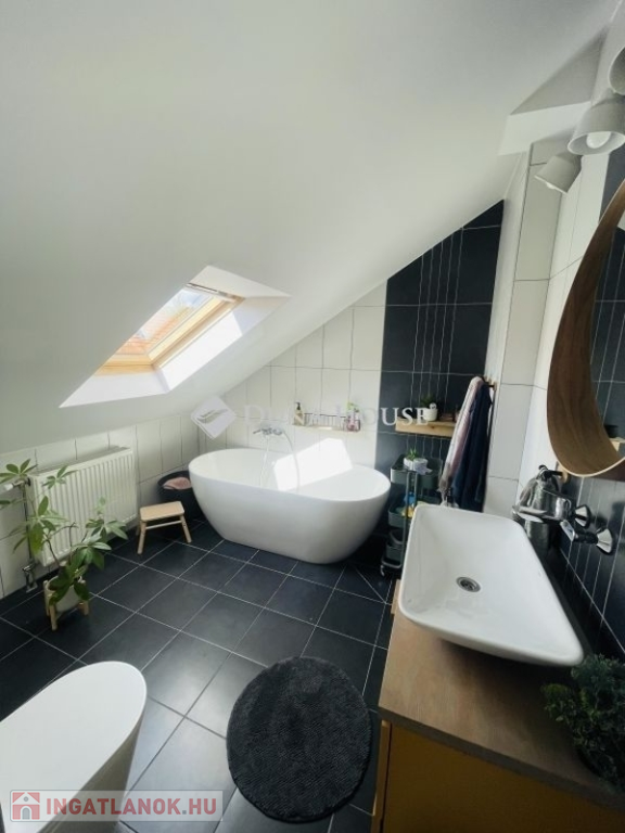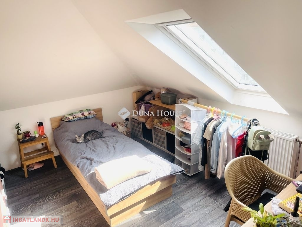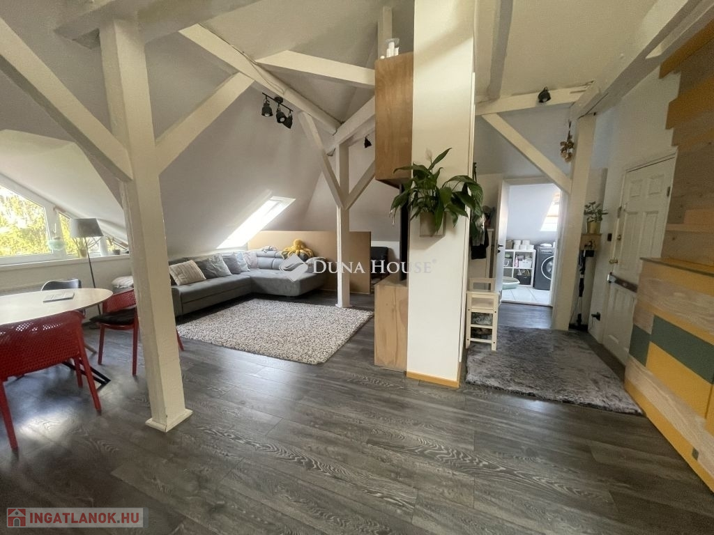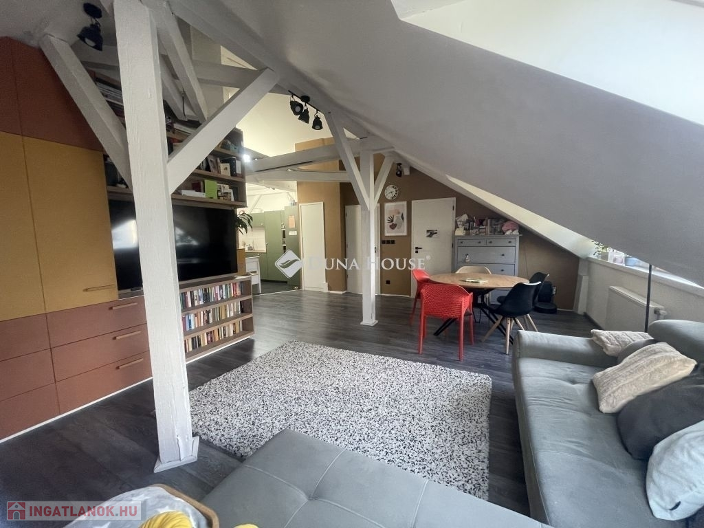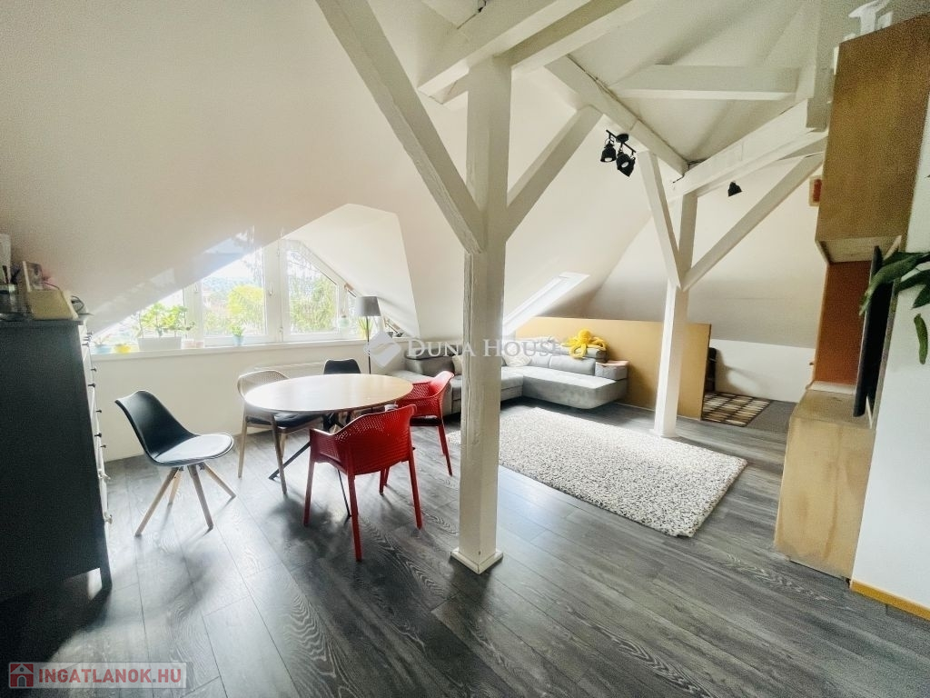 Szereted az egyedi hangulatú ingatlanokat? Akkor itt jó helyen jársz!Rózsadomb tetején a Rózsakert mellett kínálom megvételre ezt a remek otthont.Tiéd lehet az egész emelet! Gábor Áron utcában, panorámás, ízléses, 2000-ben kialakított, felújított, tetőtéri lakás rád vár! A lakáshoz tartozik + 10 millió Ft-ért a kötelezően megvásárolandó autóbeálló egy autónak ami nagy kincs a környéken!A 7 lakásos házban található lakás teljes alapterülete br. 106 m2, tulajdonilapon nettó 72 m2.A 3. emeleti lakáshoz vezető lépcsőház is fiatalos hangulatban került felújításra és az emeletek száma sem jelent gondot a jó méretezés miatt.Felérve a lakáshoz, még kint a lépcsőházban a bejáratnál lett kialakítva egy kis külső előszoba is cipőtárolóval.A lakásba belépve egyből megfogja a tekintetet a látszó tetőszerkezeti gerendák, egyedi hangulatot kölcsönözve az ingatlannak. Az egyedi színvilágú fa dekorációk, konyhabútor is a tulajdonos kétkezi munkáját dícséri szakmájából adódóan.A világos, d-ny-i tájolású nappali remek színtere a családi életnek. A nappali végén egy háló kuckó lett kialakítva a család bővülése miatt, ami kis bővítéssel egy plusz szoba is lehet.Az étkező mellett nyílik a két külön bejáratú hálószoba, a nagyobbikban még egy kis gardrób is kialakításra került. A konyha plusz egyedisége a közel 4. méteres belmagassága, ahol tetőablakkal valamint a lichthofra is szellőztethetünk s míg készül az ebéd, addig a lócán megpihenhetünk kicsit.A közlekedőből juthatunk a mosókonyha-wc helyiségbe s e mellett található a kádas fürdőszoba wc-vel, ahol a tusolónak is minden kiállása megtalálható ha valaki a zuhanyzást részesítené előnyben.Ezt a tetőtéri lakást azoknak ajánlom, akik értékelik a minőséget, a kényelmet és a kivételes kilátást. Ne hagyja ki ezt a ritka lehetőséget, hogy egy ilyen különleges otthon tulajdonosa lehessen!A lakókörnyezet maga is ideális, nyugodt és barátságos, így tökéletes választás mindazok számára, akik egy csendes, de mégis központi helyen szeretnének élni. A közvetlen közelben minden megtalálható, ami a kényelmes élethez szükséges: üzletek, oktatási intézmények, egészségügyi központok, valamint tömegközlekedési csomópontok is.A lakás kialakítása modern érzést kölcsönöz, miközben az otthon melegét is megőrzi. A felújítási munkálatok során csak a legjobb minőségű anyagokat használták fel, így a jövőbeni tulajdonos nagy valószínűséggel nem kell, hogy aggodalmaskodjon karbantartási problémák miatt. A lakás tágas terei intelligens elrendezésének köszönhetően maximális kényelmet biztosítanak a mindennapok során.Ha felkeltete érdeklődését ez a bájos otthon, akkor kérem keressen elérhetőségeimen.A lakás ára:135 millió Ft