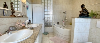 A két nagyméretű hálószoba az emeleten található, ahová gránit burkolatú lépcsőn jutunk fel.