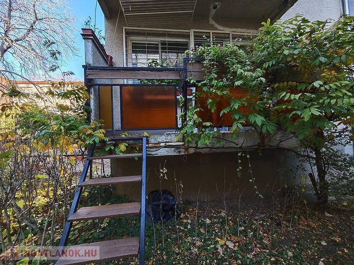 Hűvösvölgyi úton, közel a Szerb Antal utcához, egy parkosított területen található, az úttól távol eső társasházban, egy magasföldszinti, kertre néző, jó állapotú, jó elosztású, erkélyes, kertkapcsolatos lakás. A lakás minden helysége ablakos, a konyhában található egy kis étkezősarok, és egy ablakos kamra is. 2015-ben történt a teljes körű felújítás, beleértve a vezetékeket, és a fűtésrendszert, mely kombicirkó. A nappaliból nyíló loggia Dk-i tájolású, és oldalkert irányába néz, ahonnan egyből le tudunk menni a kertbe. Pincetároló és 1 autó számára kerten belüli gépkocsibeálló tartozik a lakáshoz. Ezenkívül tartozik egy 15nm-es garázs is a lakáshoz, melynek vételára +18M Ft.