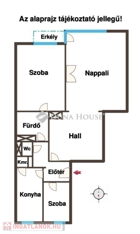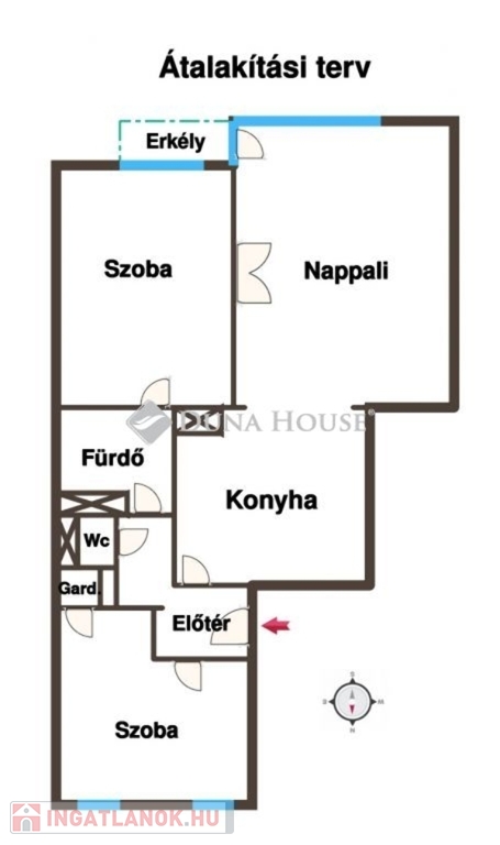 Elrendezés: 3 szoba, mely igény szerint tovább alakítható (3 egész szobássá).