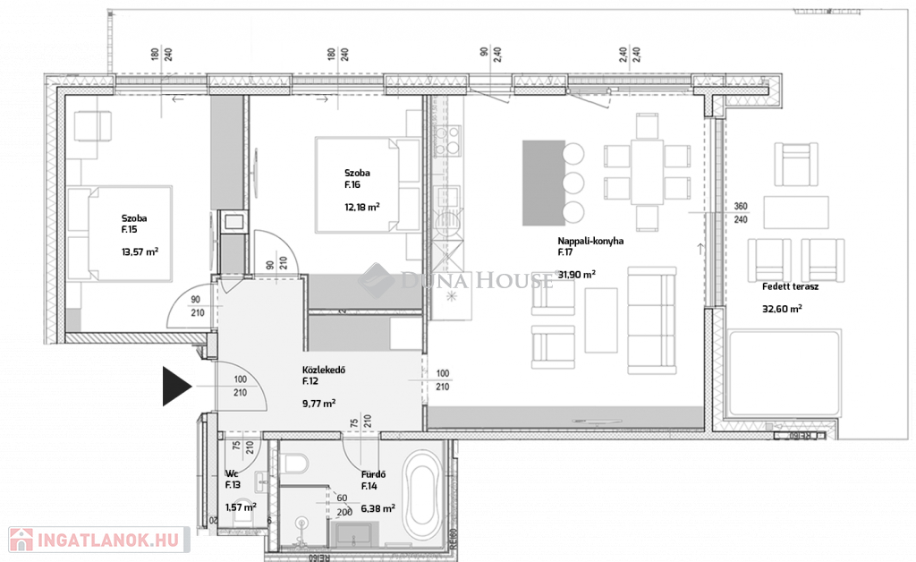 A konyhabútor és a beépíthető gépek kialakítása és beszerzése a leendő tulajdonosra vár, teljes mértékben az egyéni ízléséhez és igényekhez igazíthatóan.