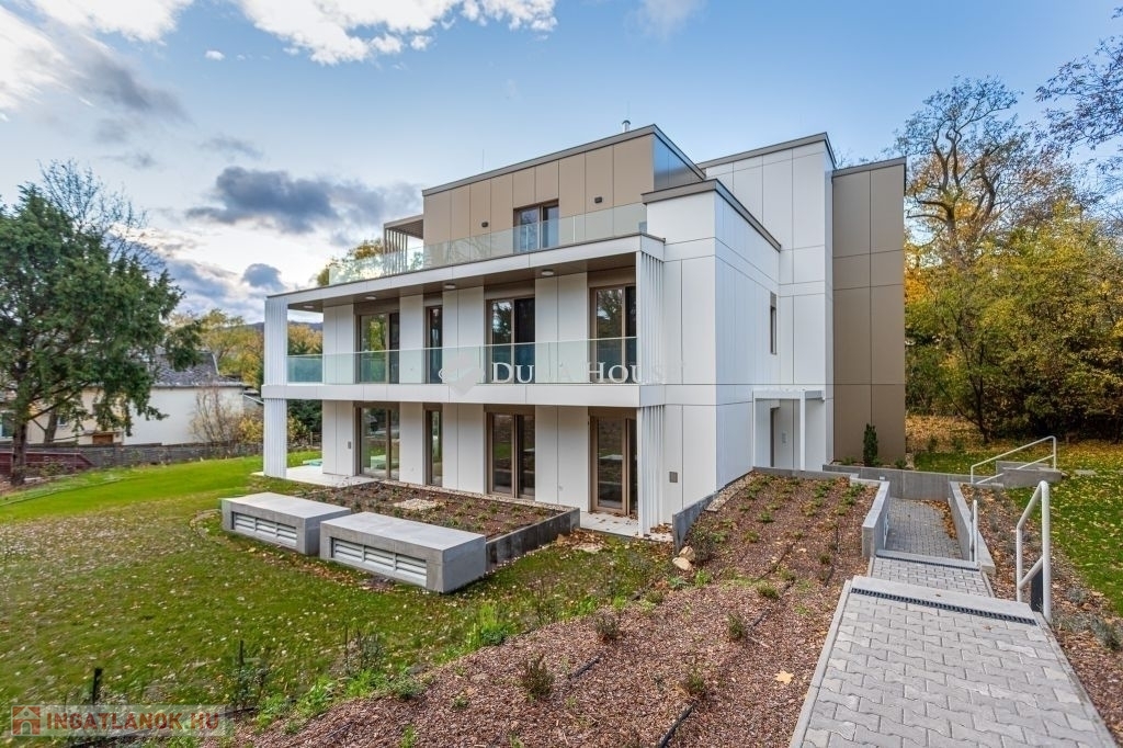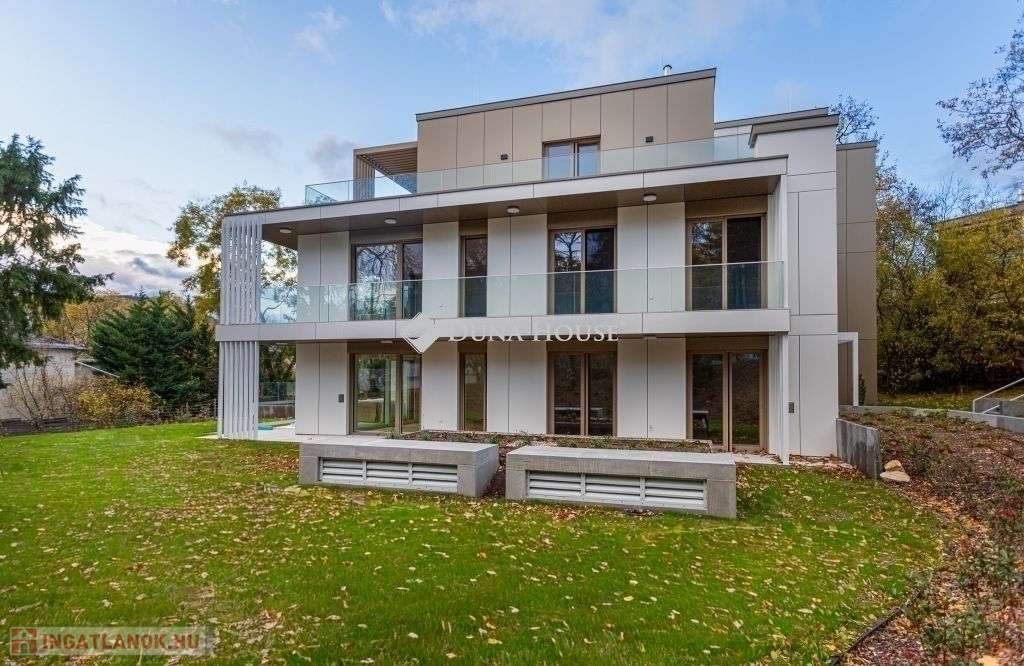 A dús növényzettel teli, 2234 m2-es telekre épült 3 szintes ingatlan a városi kényelem és a természetközeli élet ideális kombinációját kínálja. A tervezés során kiemelten ügyeltek a privát terekre. Nagy figyelmet kapott a praktikusság, a tágas élettér és a kényelmes, jól kihasználható teraszok kialakítása, melyek alapterületének arányos része a megadott összterületbe is beleszámít. A teraszok jacuzzival és pergolával felszereltek.