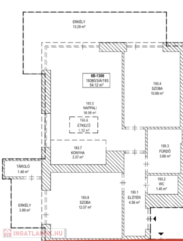 Alapterület: 54 m² + 18 m² erkély