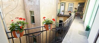 Ablakai a belső udvarra tekintenek így biztos lehet benne, hogy a külső forgalomból szinte semmi sem szívárog be a lakásba.