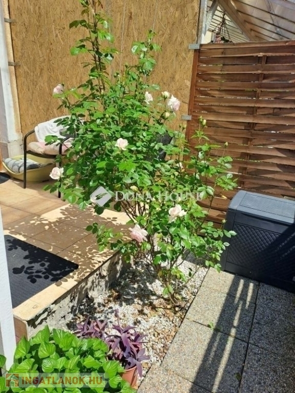 A teljesen elkülönített, saját használatú, 150 m²-es kert ideális teret biztosít pihenéshez, családi és baráti összejövetelekhez. A kertben téglából épített sütögető-bográcsozó rész, kerti tároló, valamint egy kb. 10 m²-es fedett terasz is kialakításra került.