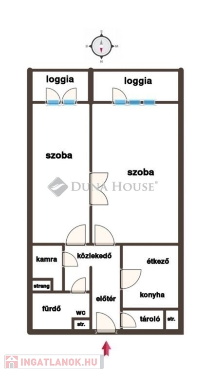 Az ingatlan egy 15 szintes társasház kényelmes, 2. emeletén helyezkedik el. Az 52 m²-es lakás két szobával és egy ritkaságnak számító dupla lodzsával rendelkezik. A déli tájolásnak köszönhetően a terek egész nap világosak és barátságosak.