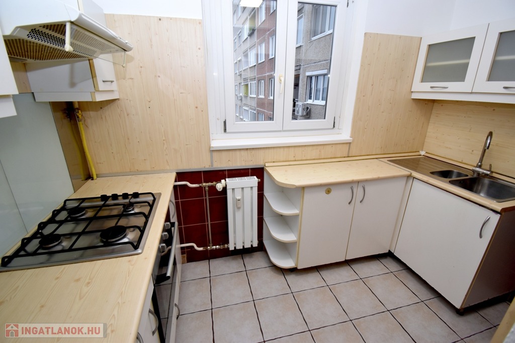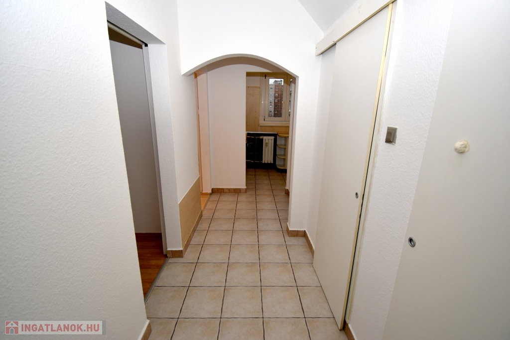 A lakás parkra néző, amely nyugodt, zöld környezetet biztosít, miközben a városi infrastruktúra előnyei is maradéktalanul elérhetők A szobák burkolata laminált parketta, míg a többi helyiség járólappal burkolt. Az ablakos konyha természetes fénnyel telített, praktikus kialakítású, ideális a mindennapi főzéshez. A fürdőszoba zuhanykabinnal felszerelt, a mellékhelyiség külön helyiségben található. A mosógép elhelyezésére a fürdőszoba melletti gardróbhelyiség ad kényelmes megoldást.