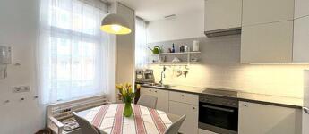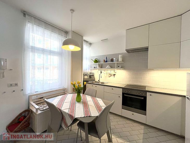 A konyha új bútorzatot kapott, étkezővel rendelkezik. A mosógép ki-és beállása ebben a helyiségben került kialakításra.